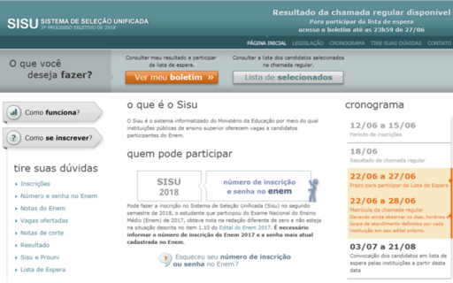 Ontem terminou o prazo para que os estudantes que não foram selecionados na chamada regular participassem da lista de espera. A convocação desses candidatos será de 3 de julho a 21 de agosto.