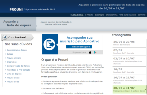 Começa nesta segunda-feira as inscrições para a lista de espera do Prouni. As inscrições encerram na terça-feira. As vagas são para o segundo semestre deste ano.