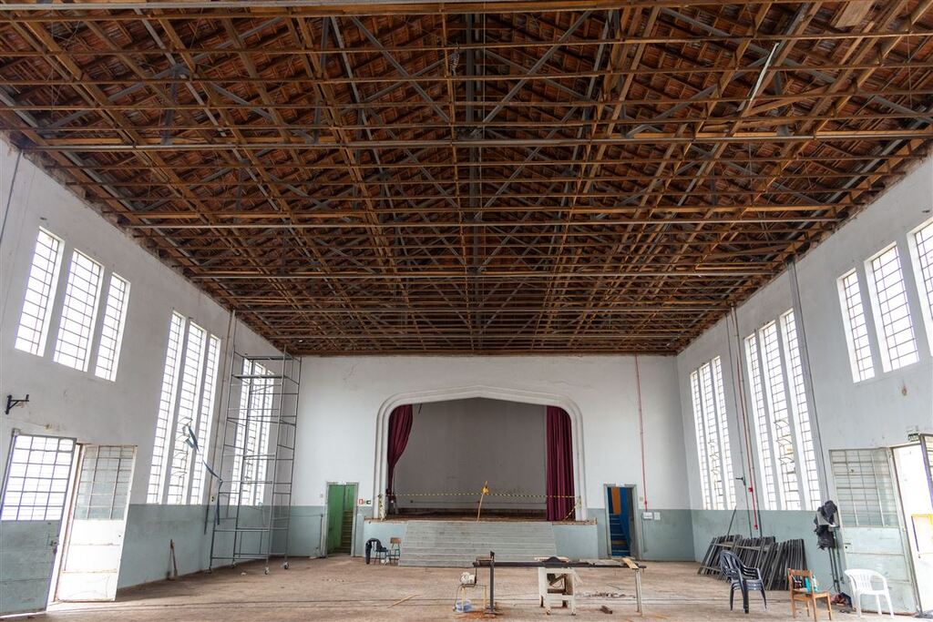 No prédio secundário, que funciona como auditório e também já foi usado para aulas de educação física, a estrutura de madeira foi inteiramente substituída. As peças originais estavam deterioradas, mas, atendendo a orientações do Instituto do Patrimônio Histórico e Artístico (Iphae), o piso será reconstruído com material idêntico.