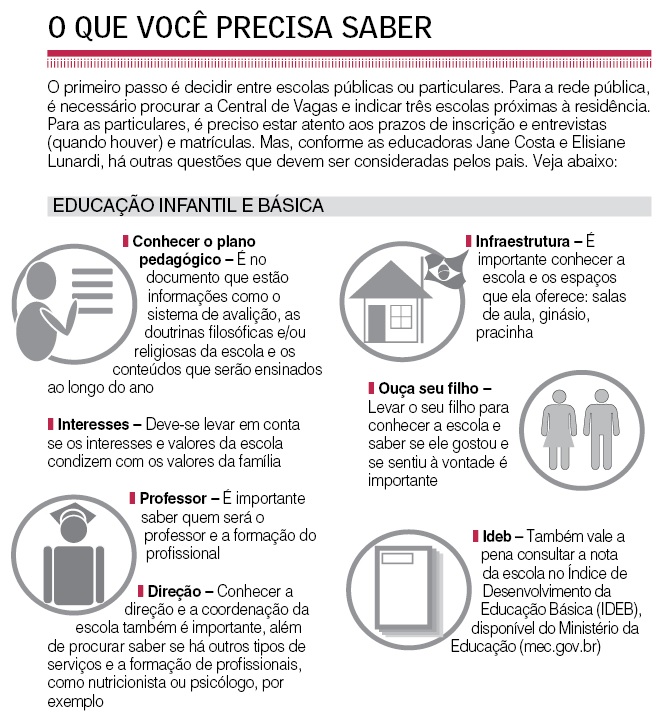 - As observações para alunos da Educação Infantil e da Educação Básica valem também na hora de escolher onde seu filho vai cursar o Ensino Médio