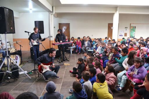 Os alunos da Escola Municipal de Ensino Fundamental Fontoura Ilha, no Bairro Patronato, tiveram uma aula diferente na manhã de quarta-feira. No lugar de livros e canetas, guitarras, microfones e acordes. Cerca de 170 estudantes, da Educação Infantil ao 5º ano do Ensino Fundamental, participaram de uma ação da banda The Césaros, que apresentou a performance Pela Encruzilhada, como forma de divulgação do novo trabalho autoral que leva o título da apresentação. O objetivo é criar um itinerário de apresentações para crianças, jovens e adolescentes.