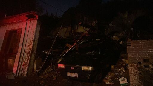 Um carro, pertencente a um sobrinho, ficou preso nos escombros. A família deve fazer a remoção e a prefeitura deve iniciar a demolição da estrutura para evitar novos riscos, informou Júnior.