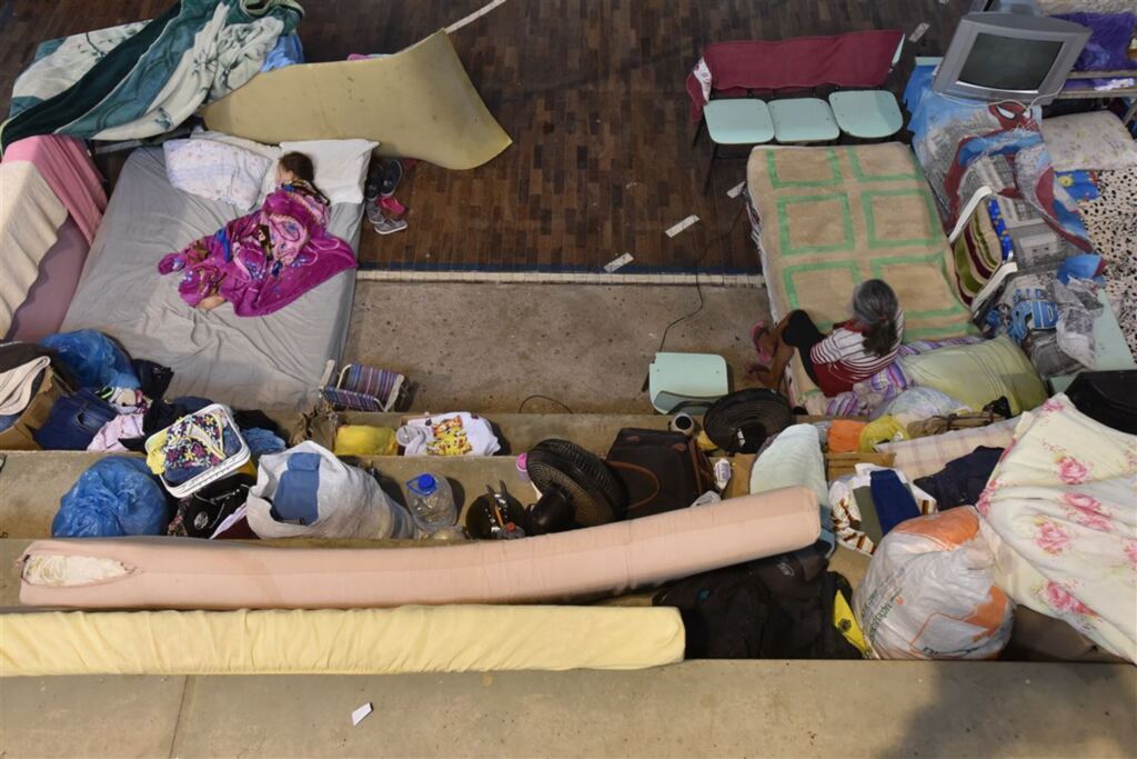 Desde o último fim de semana, 45 famílias estão alojadas no Ginásio da Escola Municipal Oliveiro Thaddeo, em Rosário do Sul, recebendo assistência da prefeitura. Com todo esse tempo fora de casa, o que era para ser apenas uma moradia provisória já está virando rotina. Mas, para a convivência ser harmoniosa, existem regras. Tudo é definido em uma reunião que acontece diariamente entre as famílias e a prefeitura - a hora de se alimentar, de dormir e até de as crianças jogarem futebol dentro do ginásio.