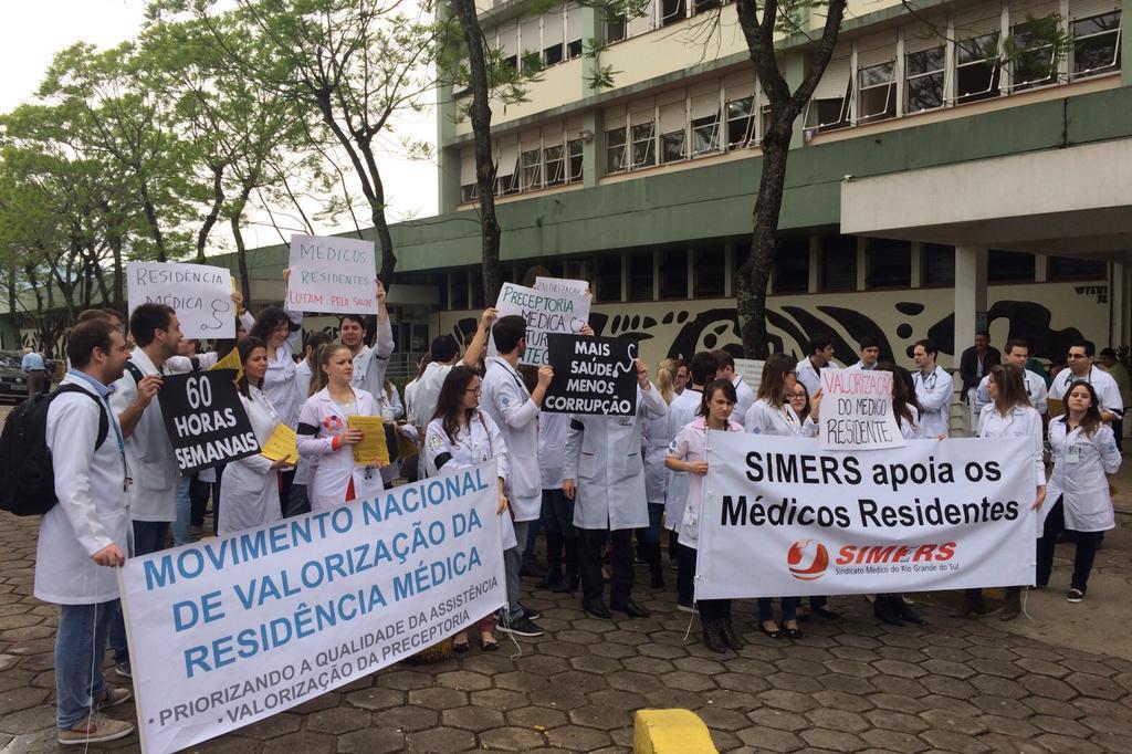 Os médicos residentes do Hospital Universitário de Santa Maria (Husm) não trabalharam desde as 8h desta quinta-feira, enão irão trabalhar até as 8h da sexta-feira. Entre os motivos da paralisação dos profissionais está o plano de carreira, a melhoria na estrutura dos hospitais e a contratação de médicos que atuem como preceptores (ou seja, que atuem exclusivamente na orientação aos residentes). O movimento também é contrário aos cortes nas verbas para a saúde pública.