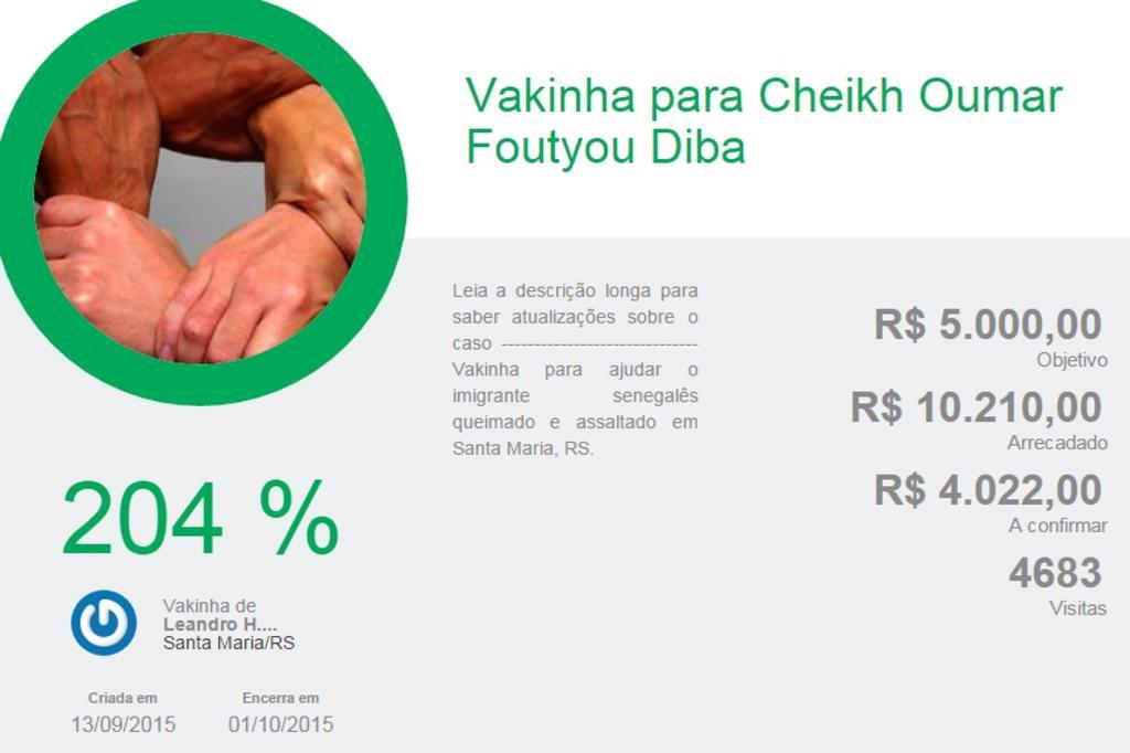 2. Valor arrecadado em vaquinha não será repassado a senegalês