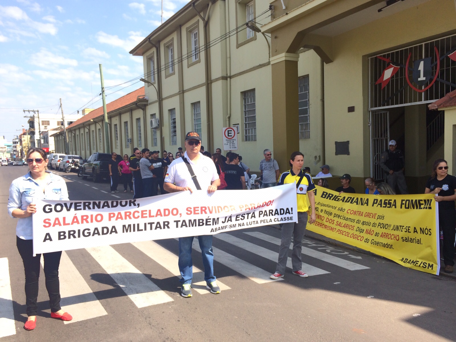 Em Santa Maria, sindicatos dos professores estaduais, Polícia Civil e Susepe se reuniram em frente à Brigada Militar, na Rua Pinto Bandeira.