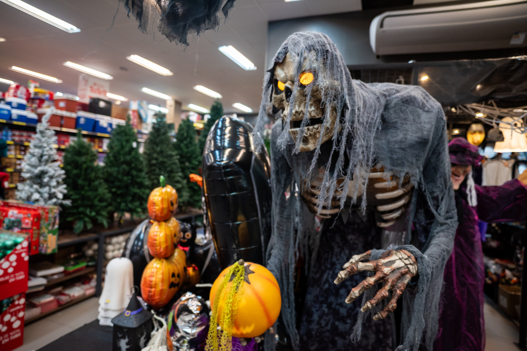 Se de um lado a loja celebra o Natal, do outro, o clima é terror. Nos últimos dois anos, a data americana ganhou força no Brasil e, em Santa Maria, a procura surpreendeu os lojistas. A venda de fantasias, máscaras e acessórios cresceu tanto que o espaço reservado para o tema aumentou. Tiaras ou brincos temáticos, por exemplo, podem ser encontrados a partir de R$ 15.
