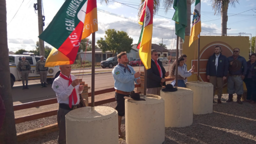 Após o hasteamento das bandeiras do Brasil, Estado, município e da entidade, foi executado os hinos do Brasil e do Rio Grande do Sul, entregue os títulos de participação e presentes aos cavalarianos. Após, o prefeito Osvaldo Froner, em pronunciamento, agradeceu a todos os participantes e destacou a importância de cada um dos cavalarianos, o que enaltece ainda mais essa jornada durante todos esses dias, e também declarou aberta oficialmente os festejos em comemoração à Semana Farroupilha.