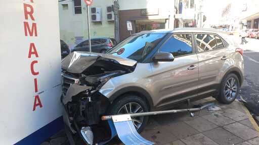 Com o impacto, o Creta invadiu a calçada e bateu contra a parede de uma farmácia, porém sem causar danos à estrutura.