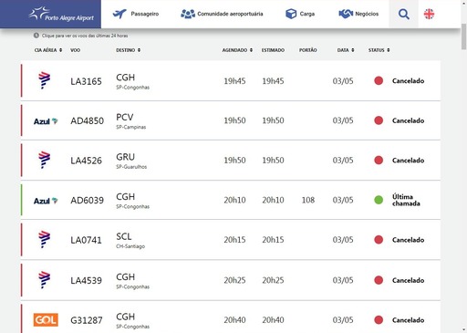 Após o alagamento nas ruas da zona norte de Porto Alegre, entorno da Rodoviária e Centro Histórico, na manhã nesta sexta-feira (3), a água chega ao Aeroporto Internacional Salgado Filho. Até então, 17 voos foram cancelados. No site, os horários seguintes aparecem cancelados.