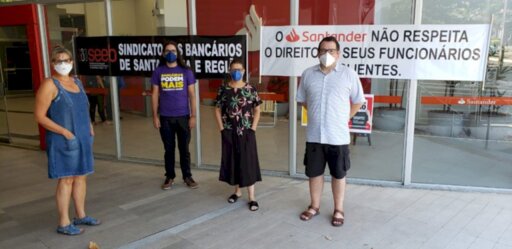Funcionários das agências bancárias do Santander, em Santa Maria, realizaram um protesto das 10h até as 14h deste sábado com o apoio do Sindicato dos Bancários de Santa Maria e Região. Isso porque segundo a categoria, o banco decidiu abrir as agências em todo o país para testar o trabalho aos sábados em função de uma campanha de crédito e renegociação chamada 'Desendivida', como projeto piloto.