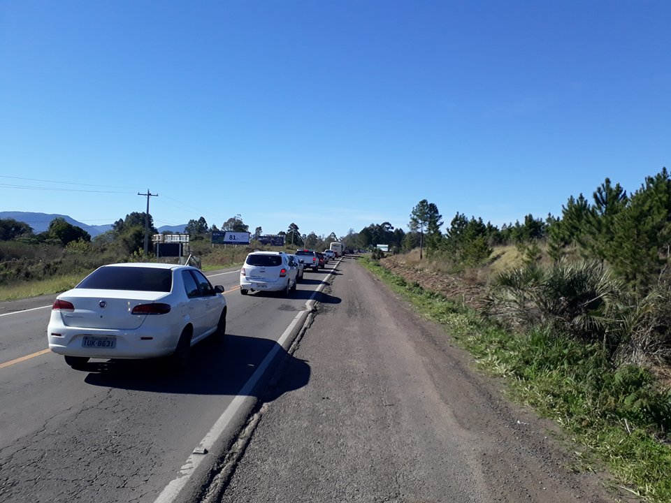 O trânsito chegou a ficar parado, com registro de engarrafamento de um quilômetro, mas já foi liberado.