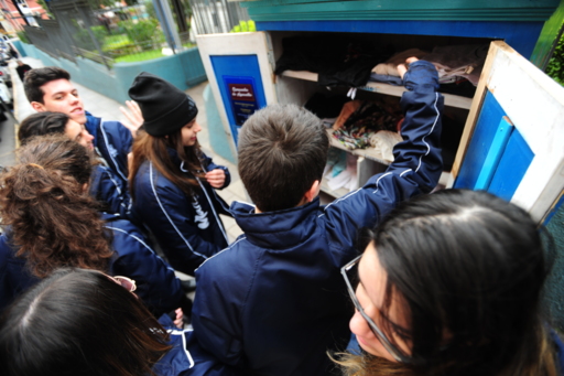 O estoque começa com doações da comunidade escolar e, aos poucos, ganha a adesão de quem toma conhecimento da proposta. No primeiro ano, em 2016, foram arrecadadas 900 peças no total. No ano passado, foram mais de 1,5 mil. Há quem prefira doar uma maior quantidade de agasalhos. As doações mais volumosas podem ser deixadas na portaria da escola. De lá, elas são colocadas no depósito, e repõem o armário a cada dia.