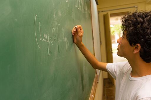 O professor de matemática, Fabrício Halberstadt dá aulas para Felipe e conta que devido ao alto nível de dificuldade da prova se sente muito feliz com os resultados dos alunos do colégio: