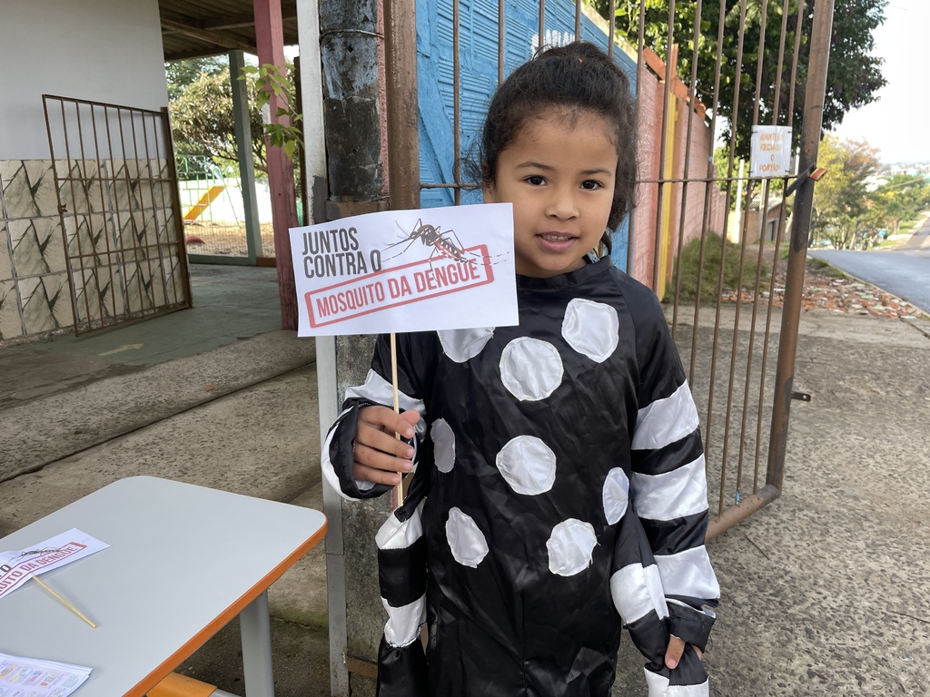 Além da música e confecção dos panfletos pelas crianças, a pequena Ana Clara Rosa Romão, 5 anos, estava vestida de Aedes aegypti. A pequena, como estava fantasiada, teve várias vezes a iniciativa de ir conversar com as pessoas da comunidade sobre a importância de não deixar água parada.