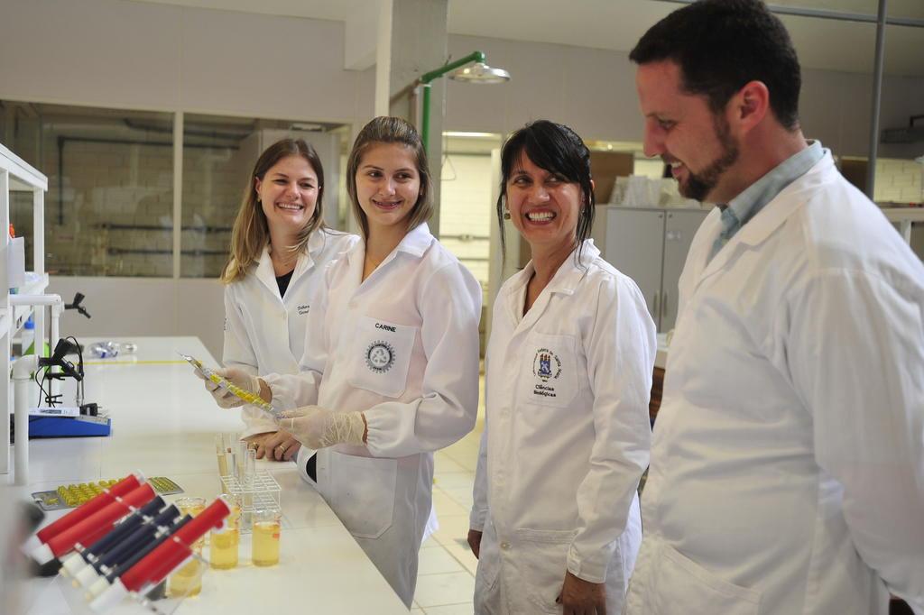 Da esq. para a dir., a coordenadora Débora Missio Bayer, a mestranda Carine Baggiotto, e os professores Marilise Krügel e Elvis Carissimi