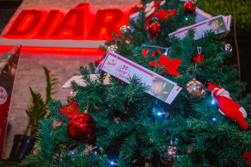 Árvore de Natal instalada na sede do Grupo Diário, na Faixa Nova, um dos pontos de doação.