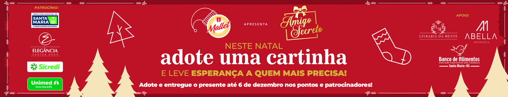 A campanha "Amigo Secreto de Natal" é apresentada por Panifício Mallet, com realização do Grupo Diário, patrocínio de prefeitura de Santa Maria, Elegância Center Shop, Sicredi e Unimed e apoio de Abella Advocacia, Banco de Alimentos de Santa Maria e Livraria da Mente.