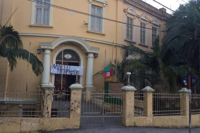 _ A escola estava fechada e ninguém atendeu ao interfone do colégio, mas faixas informavam que ocupação era mantida