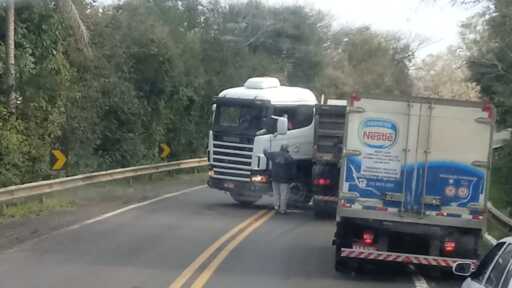 Um acidente envolvendo uma carreta, por volta das 16h desta quinta-feira, bloqueou o trânsito por cerca de meia hora na BR-287, entre os dois trevos de Jaguari. Segundo informações preliminares, a carreta teria perdido o controle e ficado em "L" no mesmo da pista. Ela tentou manobrar, mas não conseguiu sair do local. Minutos depois, outra carreta tentou passar pelo acostamento e ficou trancada. O leitor Daniel Parnow está no local e enviou fotos sobre o incidente. Meia hora depois, outro caminhão puxou a carreta que havia se acidentado, e o trânsito foi liberado no local por volta das 16h30min.