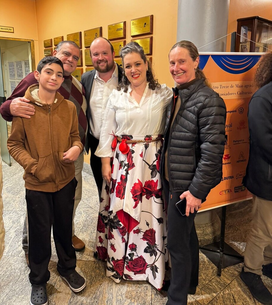 A comemoração especial começou no Theatro Treze de Maio, com o espetáculo Vientos del Sur, que uniu canto lírico, piano e castanholas em uma celebração vibrante das raízes latino-americanas e gaúchas. No palco, a soprano Yasmini Vargaz e o pianista Eduardo Knob encantaram o público com interpretações intensas e cheias de identidade, resultado de uma pesquisa artística feita entre Buenos Aires, Montevidéu, Madrid e Sevilha. Indicado ao Prêmio Açorianos, o espetáculo arrebatou aplausos calorosos da plateia — e emocionou profundamente a convidada da noite.