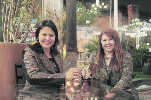 As lareiras, além de aquecerem, dão um toque todo especial ao lugar. Eu e a Denise Rocha, proprietária do local, aproveitamos para brindar a vida nesse aconchegante espaço.