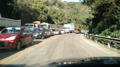 Segundo a Polícia Rodoviária Federal (PRF), há manutenção do asfalto da via. A recomendação é que os motoristas aumentem a atenção ao trafegar no trecho. Vendedores de comida e panos de pratos estão no local oferecendo seus produtos aos motoristas que ficam no congestionamento.