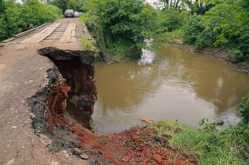 Cabeceira de ponte desmorona e impede acesso a aldeia indígena no Bairro Pé de Plátano em Santa Maria