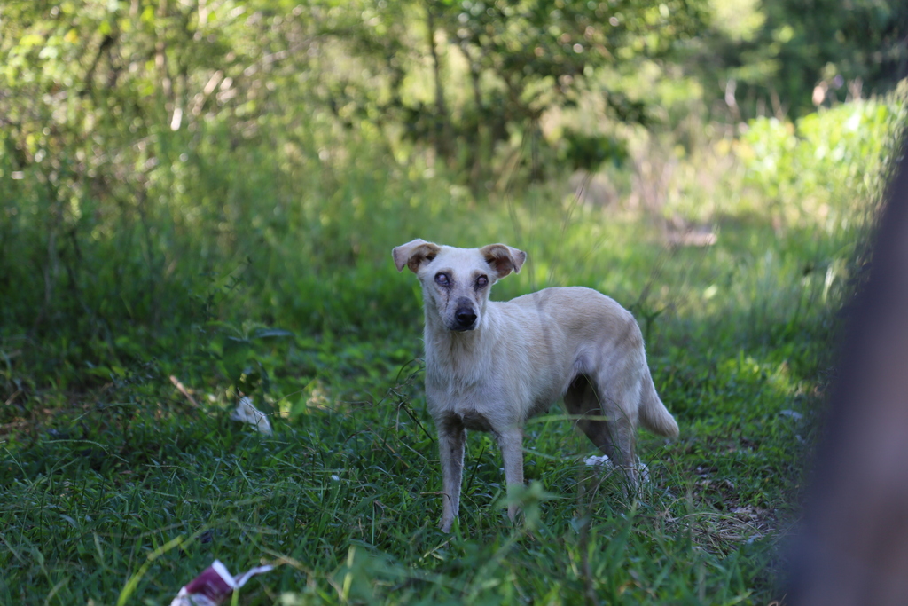 Dois cães foram encontrados abandonados na beira da Estrada Eduardo Duarte, perto da Vila Maringá, na zona leste de Santa Maria, na manhã desta quarta-feira (4). Isolados em uma estrada de chão batido, os animais estavam em meio ao lixo, restos de móveis e marcas de queima de fios. Um deles apresentava sinais de problemas de visão, indicando possível cegueira.