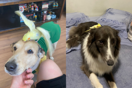 A ave, desde a sua chegada, andou pelos cômodos como se estivesse em casa. De início, a cachorra Campana estranhou a presença. Mas, segundo a "família emprestada", a calopsita não ligou e continuou passeando por cima dela.