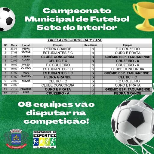 Os jogos se iniciam no próximo sábado, 27 de agosto, a partir das 14h45min, na sede da Pedra Grande, quando a equipe da casa enfrenta o Cruzeiro e o Estudiantes joga contra o Ouro e Prata no segundo confronto da tarde.