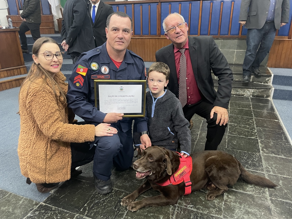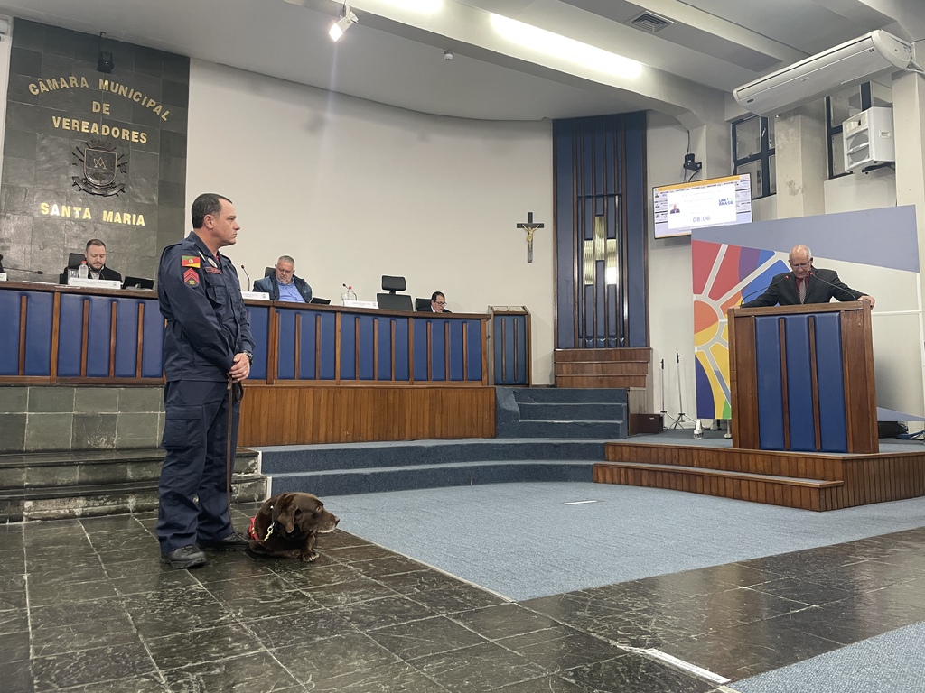 No plenário lotado, estavam colegas da corporação, familiares e outros cães de busca, como a cadela Molly.