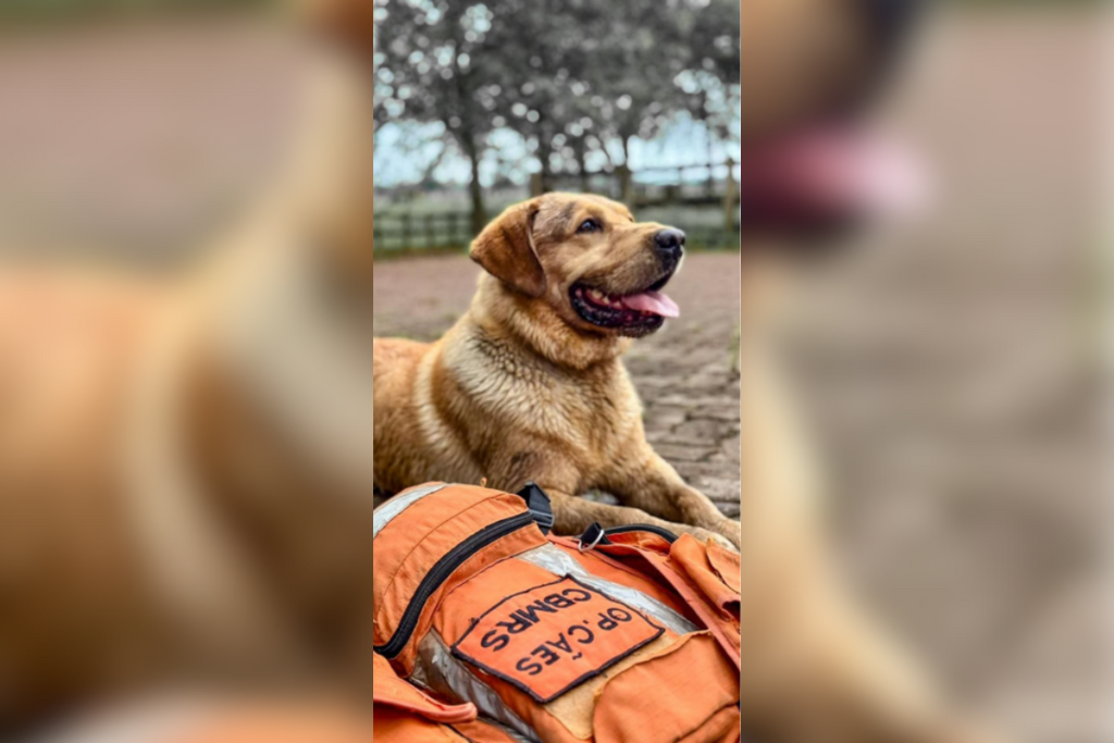 Quem assumiu o trabalho de Guapo foi o próprio filho Sheik, um labrador amarelo com certificação nacional para localizar vítimas vivas ou fatais em estruturas colapsadas ou áreas rurais.