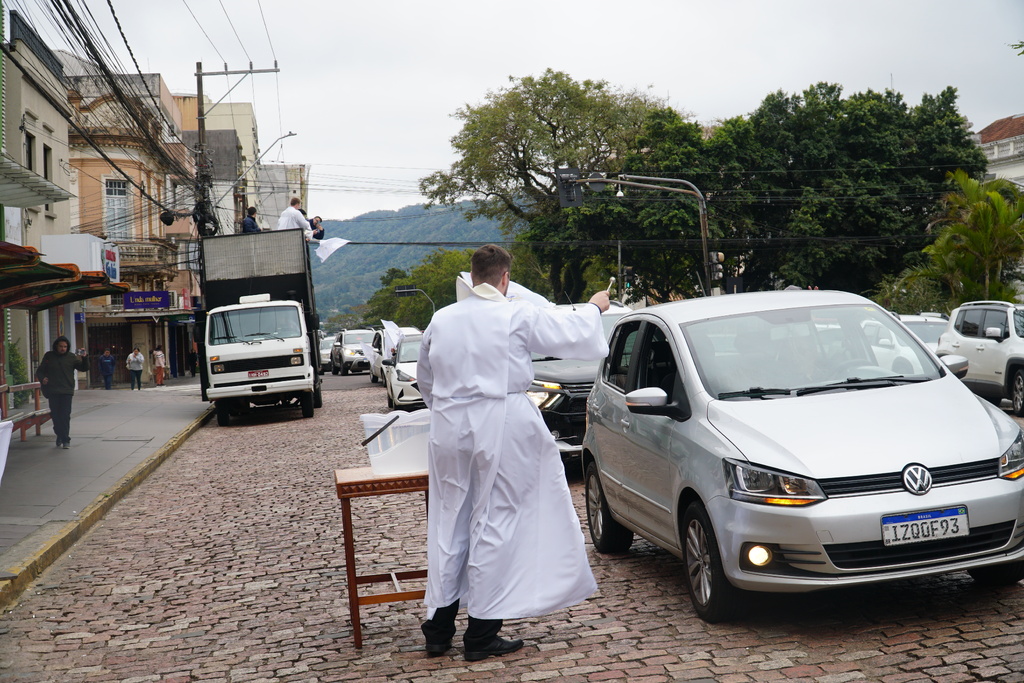 Mesmo com o tempo frio, sem sol e com vento, centenas de fiéis foram às ruas de Santa Maria na manhã desta sexta-feira (15) para acompanhar a carreata em homenagem a Nossa Senhora Medianeira. O evento marcou a celebração do primeiro feriado municipal dedicado à coroação da Rainha do Povo Gaúcho. Ao longo de todo o percurso de 17 quilômetros, moradores saíram de suas casas para saudar a passagem da imagem, com acenos, orações e até mesmo se ajoelhando nas calçadas.