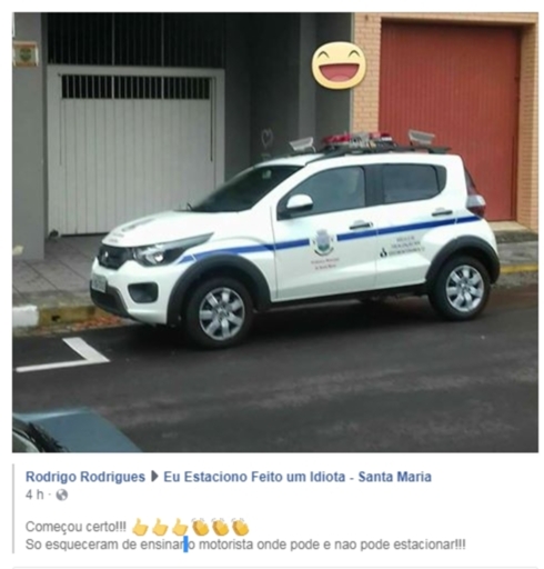 A publicação de um internauta na página do Facebook "Eu Estaciono Feito Um Idiota - Santa Maria" deu o que falar nas redes sociais ontem. Na imagem, ele flagra um carro da prefeitura e da Rek Parking parado em frente à garagem de um prédio e questiona se o veículo não deveria ser multado.