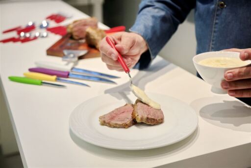 - Maminha assada guarnecida ao molho de queijos e de vinho