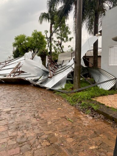O pórtico na entrada da do município também foi destruído. A Avenida Governador Walter Jobim, a principal via da cidade, registrou vários pontos com danos em função da chuva. O posto São Pedro, que completou seis anos de atividade no mês passado, teve toda a cobertura arrancada, além de bombas de combustíveis. O proprietário do estabelecimento, Lucas Assumpção, estima que o prejuízo tenha passado dos R$ 500 mil.