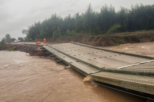 Em maio, as enchentes levaram a estrutura original, que conectava os dois municípios. Uma ponte móvel foi colocada no lugar e também foi levada. No início de junho, outra ponte móvel foi inaugurada.