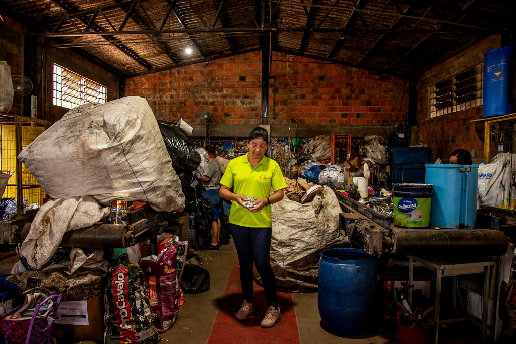 Depois de ser recolhido, os recicláveis são descarregados na sede da Asmar e passam por diversos setores até chegar à venda final. Lá é feita a triagem, momento em que os trabalhadores veem o que, de fato, o que pode ser aproveitado e reciclado.