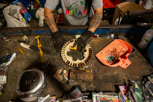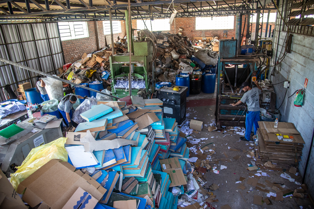 Quando chega ao galpão, o material passa por diversas etapas: