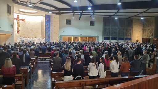 Na noite desta quinta-feira (2), uma missa como forma de união às vitimas das chuvas que vem assolando o Rio Grande do Sul ocorreu no Santuário da Basílica Nossa Senhora Medianeira, em Santa Maria.