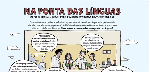 Com o apoio do Ministério da Saúde, o projeto Zero discriminação nos serviços de saúde lançou uma iniciativa que incentiva o uso de linguagem inclusiva no atendimento a pacientes com tuberculose. Intitulado Na ponta das línguas, o material é composto por um guia e cartazes, que buscam incentivar a adotação de atitudes e palavras não estigmatizantes nos serviços de saúde.