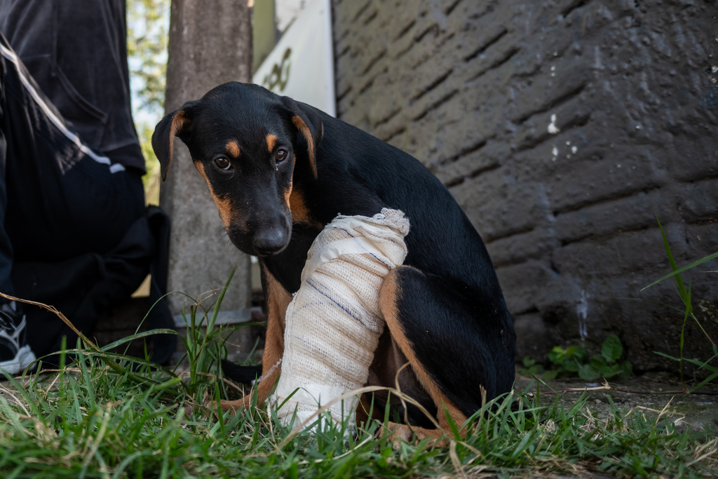Cachorrinha de pelagem preta com detalhes em caramelo foi resgatada com a pata machucada.Foto: Vinicius Becker (Diário)
