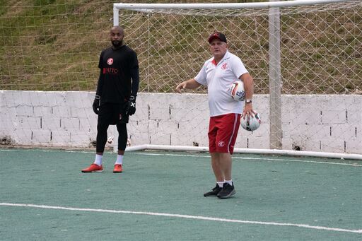 Inter-SM, do goleiro Lucio, à esquerda, e do técnico Ben-Hur Pereira, à direita, treinou nesta quinta-feira no Complexo Esportivo da Prime DGT