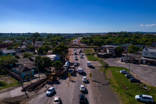 No entorno da passagem inferior da BR-287 com a rua Capitão Vasco da Cunha, equipes executam a pavimentação asfáltica do segmento. Para a realização dos serviços, o trecho tem redução de faixas e bloqueios parciais durante o deslocamento dos maquinários.