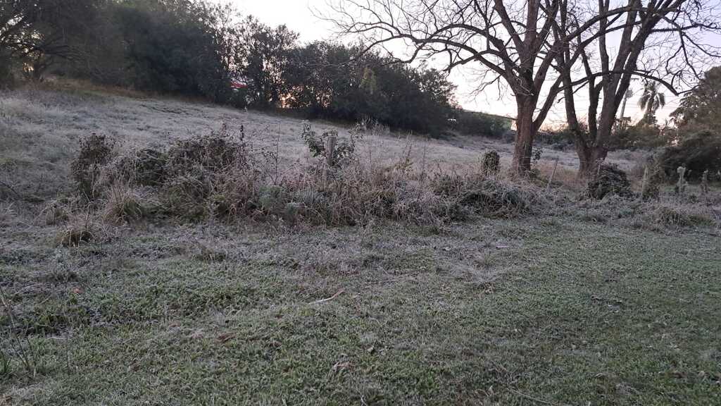 Em São Gabriel, que registrou mínima de -1,9°C, os campos amanheceram cobertos de geada.