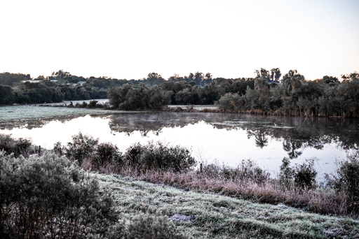 Na BR-287, a geada cobriu os campos.