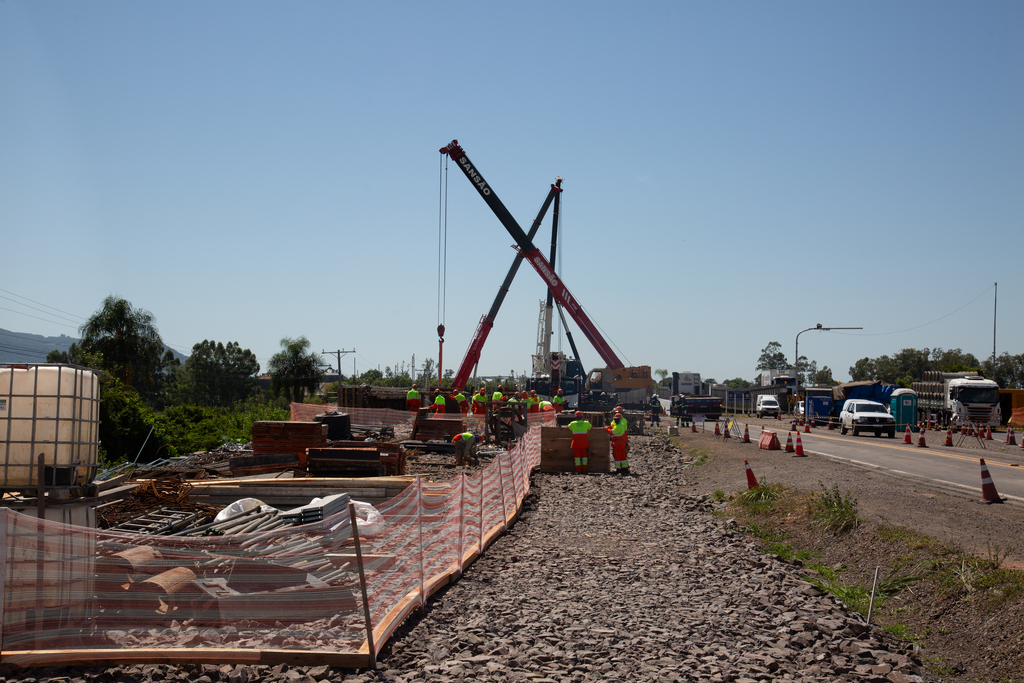 O içamento de vigas da nova ponte sobre o Arroio Grande provocou, na manhã desta terça-feira (3), congestionamentos de pelo menos cinco quilômetros no km 226 da RSC-287, em Santa Maria. No local, apenas uma pista estava liberada para o tráfego, o que exigiu a adoção do sistema de Pare e Siga. O trabalho que deveria ter ocorrido ainda na segunda, foi adiado e realizado nesta terça. Ao menos quatro guindastes participaram da operação que mobilizou funcionários, militares do Exército e caminhões.