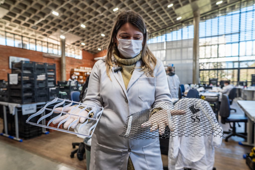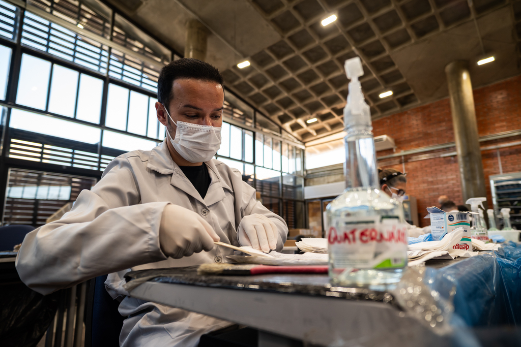 Há seis meses, o espaço do Multiuso foi adaptado para receber a Operação Recupera Acervo. No fundo da estrutura, foram instaladas as câmaras frias, guardiãs dos arquivos congelados. No centro do local, uma verdadeira operação: profissionais concentrados, vai e vem de documentos e um processo muito bem organizado para que tudo saia conforme o recomendado. O recurso para esse trabalho é oriundo do Ministério da Educação, Ministério da Gestão e da Inovação em Serviços Públicos e Ministério da Ciência, Tecnologia e Inovação via Finep.