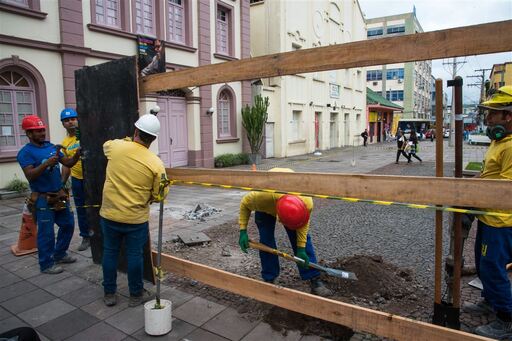 Começou nesta segunda-feira (5) a reforma da Praça Saldanha Marinho. Pelos próximos 18 meses, o espaço será revitalizado pela Construtora Jobim, responsável pelo trabalho. O prazo de entrega, no entanto, pode ser antecipado. Conforme o empresário Gustavo Jobim, em entrevista ao colunista Deni Zolin, a praça será dividida em oito quadrantes, sendo feita a reforma um por um. O primeiro quadrante será na frente do Theatro Treze de Maio, onde os serviços estavam concentrados ainda nesta manhã.